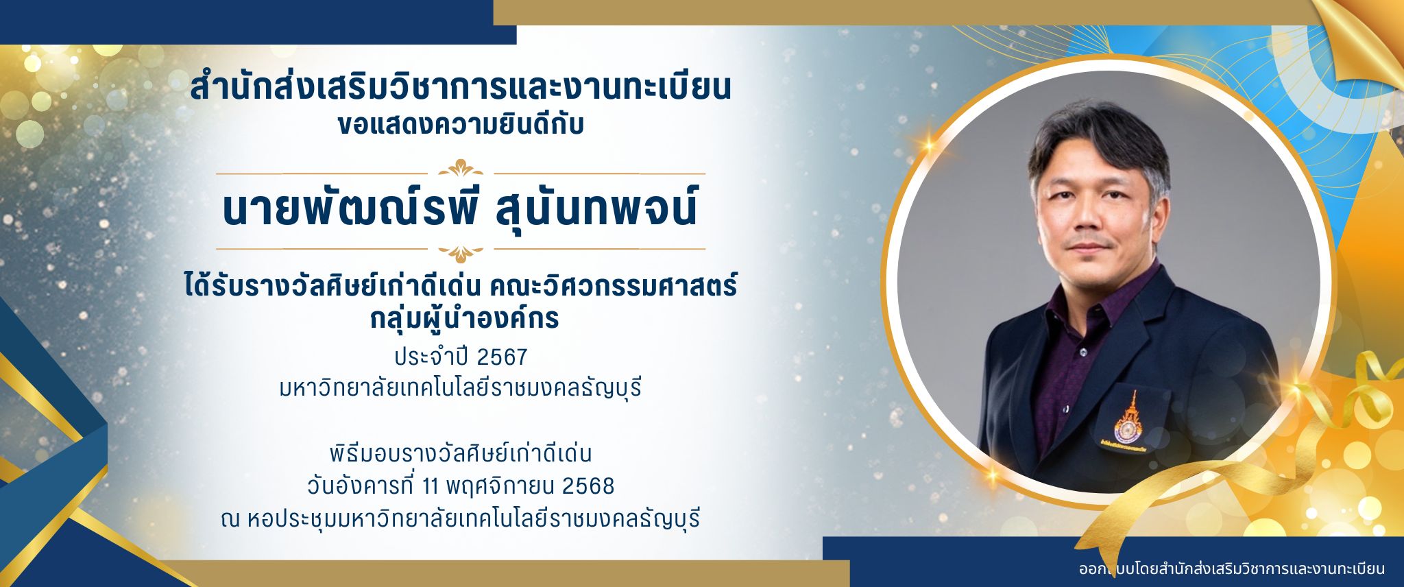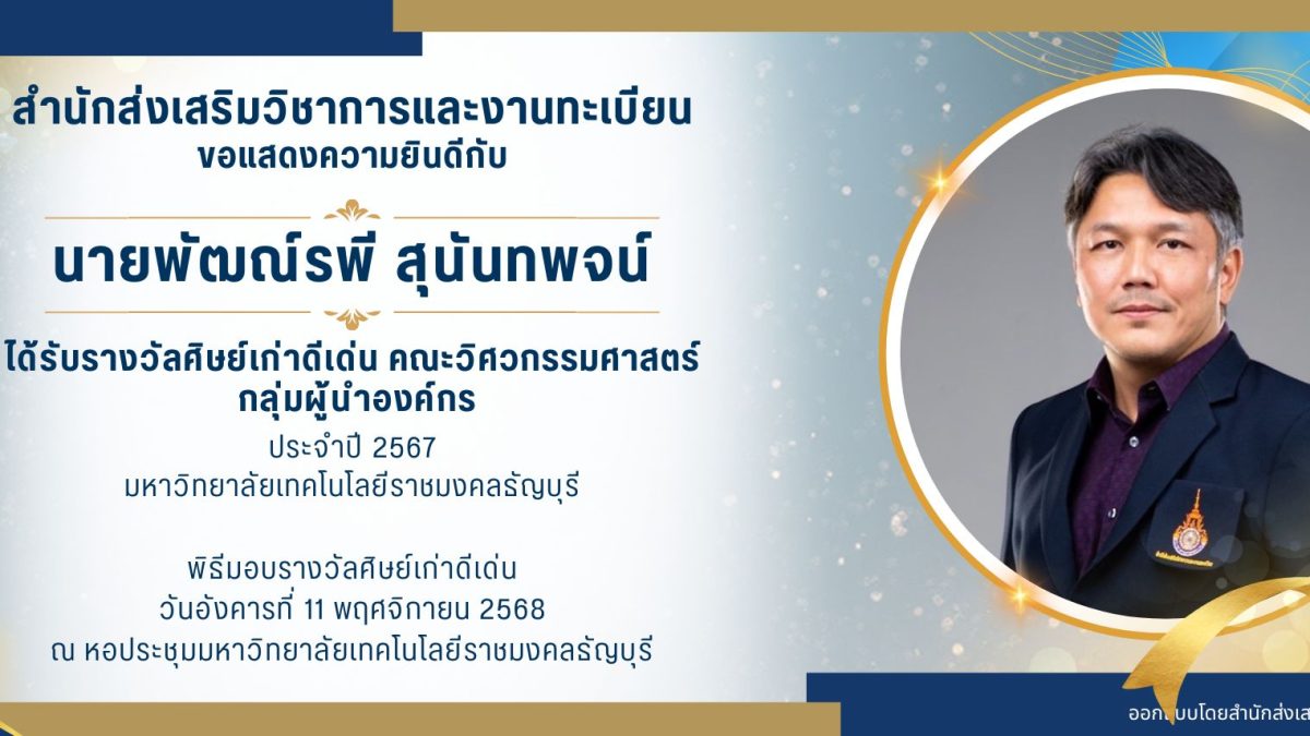 Published by Chinnawat Junsawat on November 7, 2025 สำนักส่งเสริมวิชาการและงานทะเบียน ขอแสดงความยินดีกับ นายพัฒณ์รพี สุนันทพจน์ รองผู้อำนวยการสำนักส่งเสริมวิชาการและงานทะเบียน ได้รับรางวัลศิษย์เก่าดีเด่น คณะวิศวกรรมศาสตร์ กลุ่มผู้นำองค์กร Post Views: 27 Share