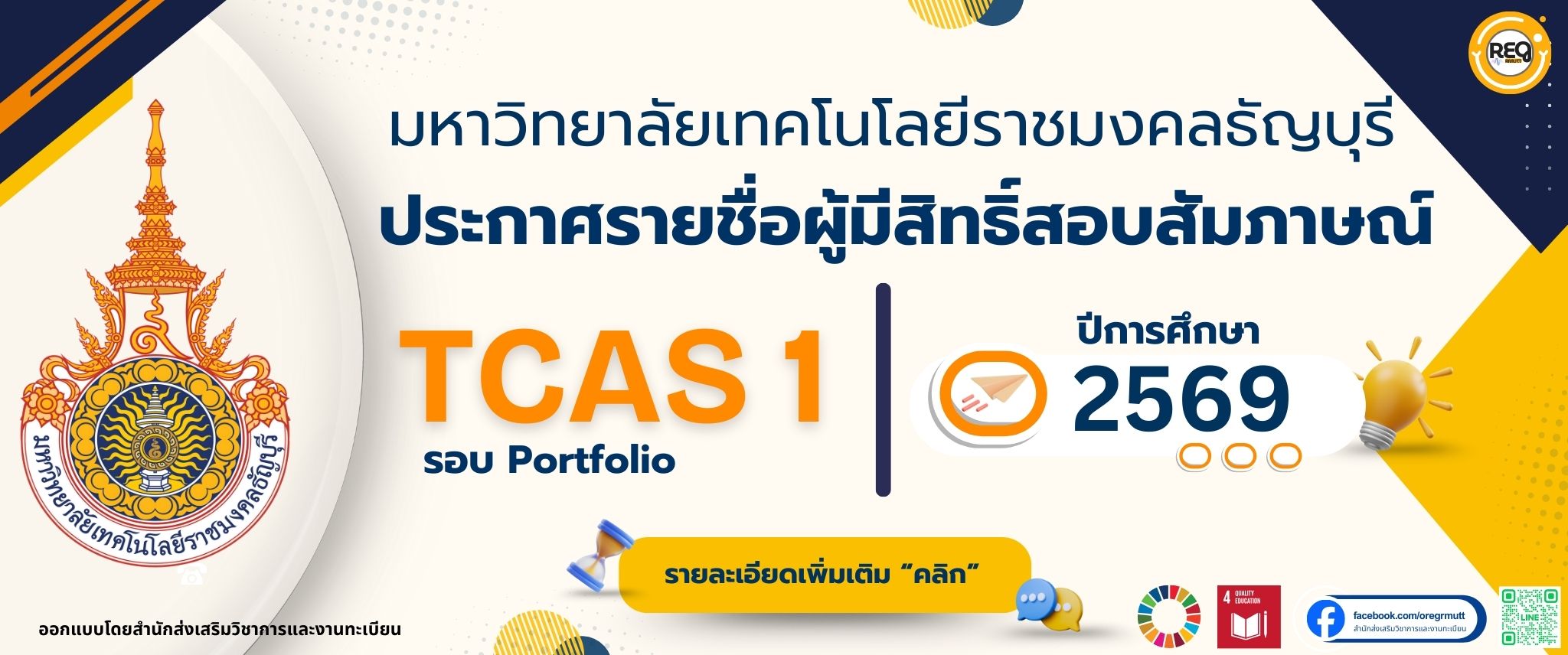 Published by korbnak jaritwong on December 12, 2025 มหาวิทยาลัยเทคโนโลยีราชมงคลธัญบุรี ประกาศรายชื่อผู้มีสิทธิ์สอบสัมภาษณ์ รอบ TCAS1 (Portfolio) ระดับปริญญาตรี ปีการศึกษา 2569 ประกาศ ณ วันที่ 13 ธันวาคม 2568 เวลา 16.00 น. รายละเอียดเพิ่มเติมคลิก Post Views: 78 Share