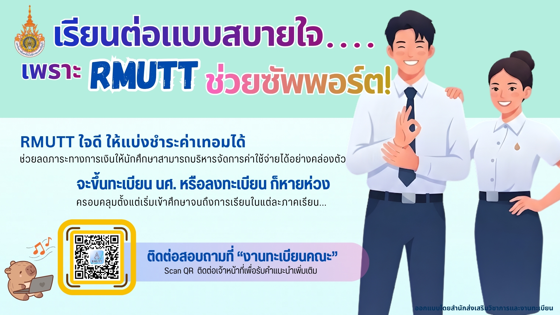 มหาวิทยาลัยเทคโนโลยีราชมงคลธัญบุรี ช่วยซัพพอร์ตนักศึกษาสามารถแบ่งชำระค่าธรรมเนียมการศึกษาได้