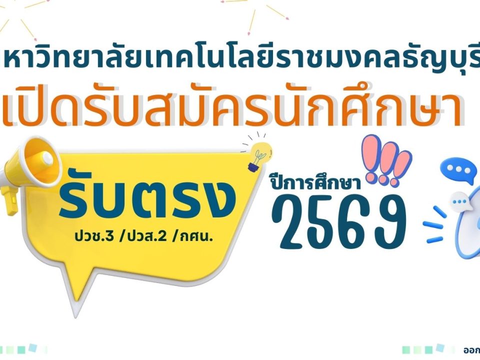 มหาวิทยาลัยเทคโนโลยีราชมงคลธัญบุรี (มทร.ธัญบุรี) ประกาศ เปิดรับสมัครนักศึกษาใหม่ รอบ รับตรง (ปวช./ปวส./กศน.) ระดับปริญญาตรี ปีการศึกษา 2569