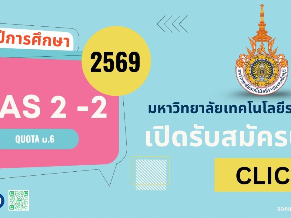 มหาวิทยาลัยเทคโนโลยีราชมงคลธัญบุรี (มทร.ธัญบุรี) ประกาศ เปิดรับสมัครนักศึกษาใหม่ TCAS 2 Quota ( ม.6 ) ระดับปริญญาตรี ปีการศึกษา 2569 ระดับปริญญาตรี ปีการศึกษา 2569