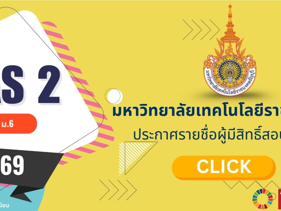 ประกาศรายชื่อผู้มีสิทธิ์เข้าศึกษา รอบTCAS 2/รอบสอบตรง ระดับปริญญาตรี ปีการศึกษา 2569