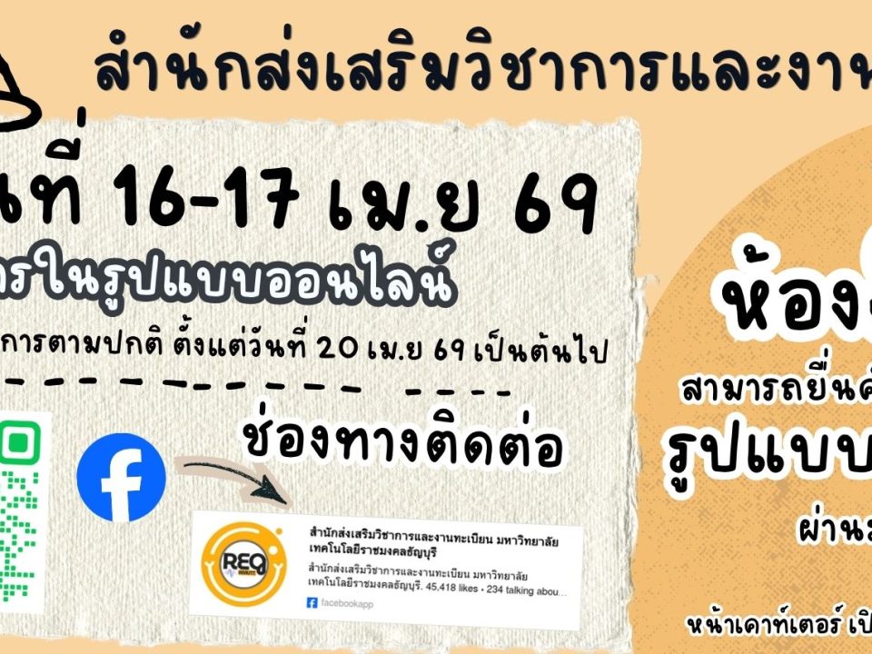 สำนักส่งเสริมวิชาการและงานทะเบียน แจ้งการให้บริการในรูปแบบออนไลน์ วันที่ 16-17 เม.ย 2569