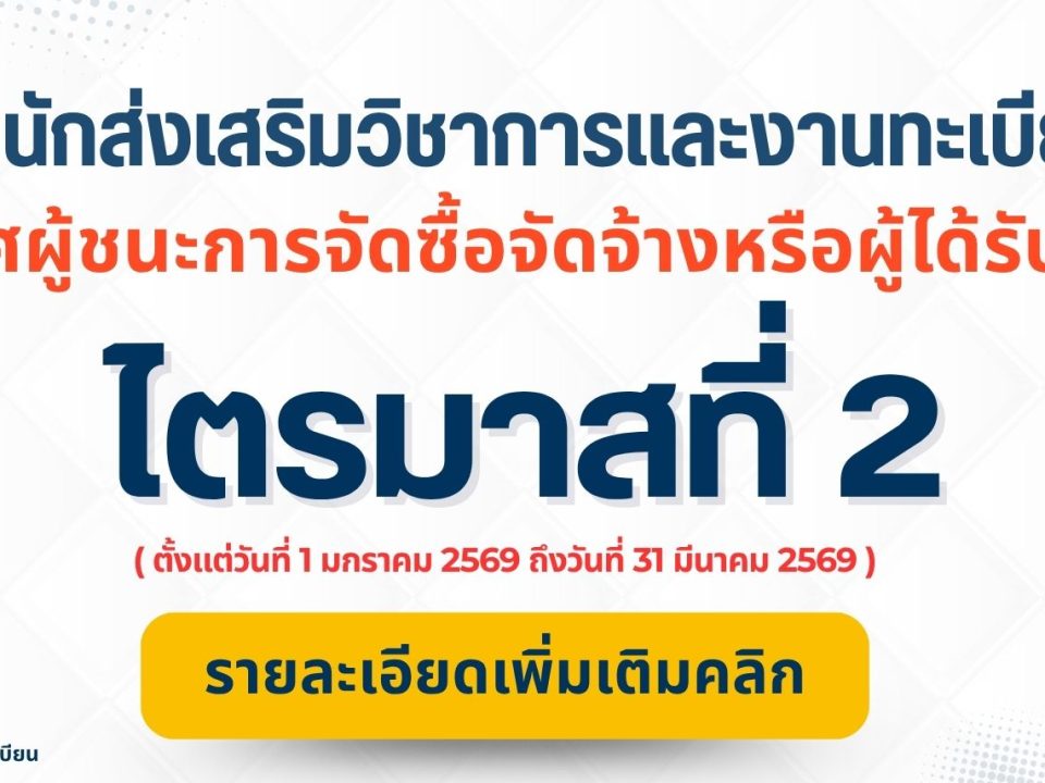 ประกาศผู้ชนะการจัดซื้อจัดจ้างหรือผู้ได้รับการคัดเลือก และสาระสำคัญของสัญญาหรือข้อตกลงเป็นหนังสือ ไตรมาสที่ 2