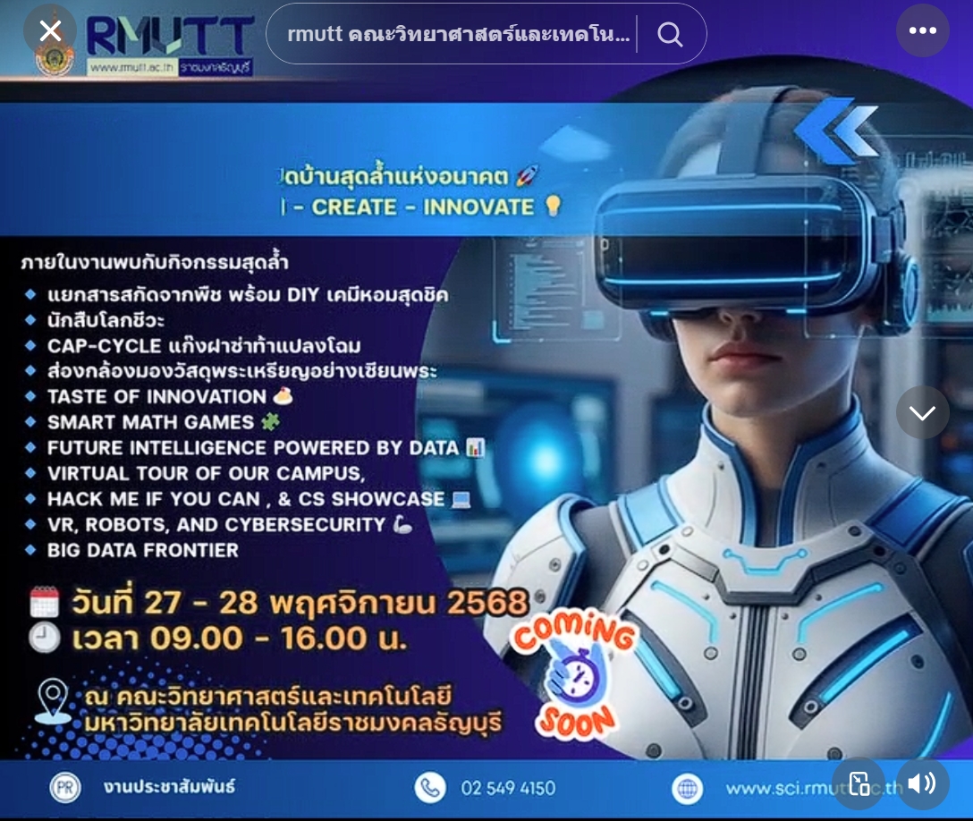 มหาวิทยาลัยเทคโนโลยีราชมงคลธัญบุรี เชิญชวนก้าวสู่อนาคตแห่งการเรียนรู้ ในงาน “RMUTT NEXT GEN: OPEN HOUSE 2026”