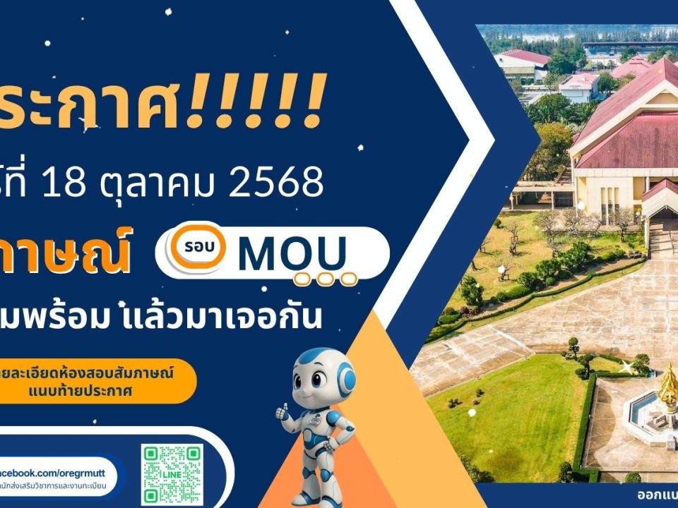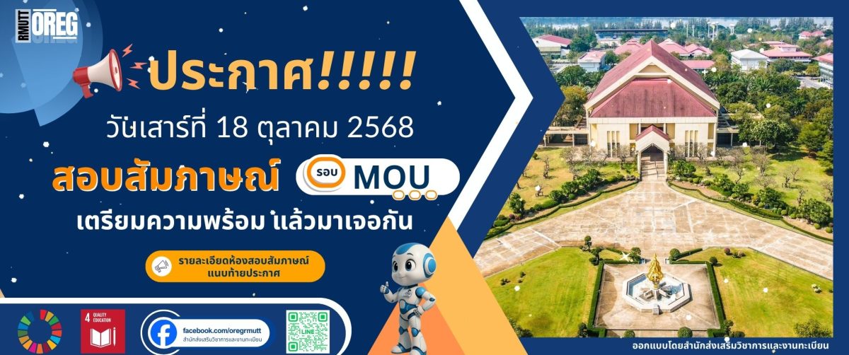 มหาวิทยาลัยเทคโนโลยีราชมงคลธัญบุรี ประกาศรายชื่อผู้มีสิทธิ์สอบสัมภาษณ์ รอบ MOU ระดับปริญญาตรี ปีการศึกษา 2569 📢 วันสอบสัมภาษณ์: วันเสาร์ที่ 18 ตุลาคม 2568 📢 รายละเอียดเพิ่มเติม คลิก