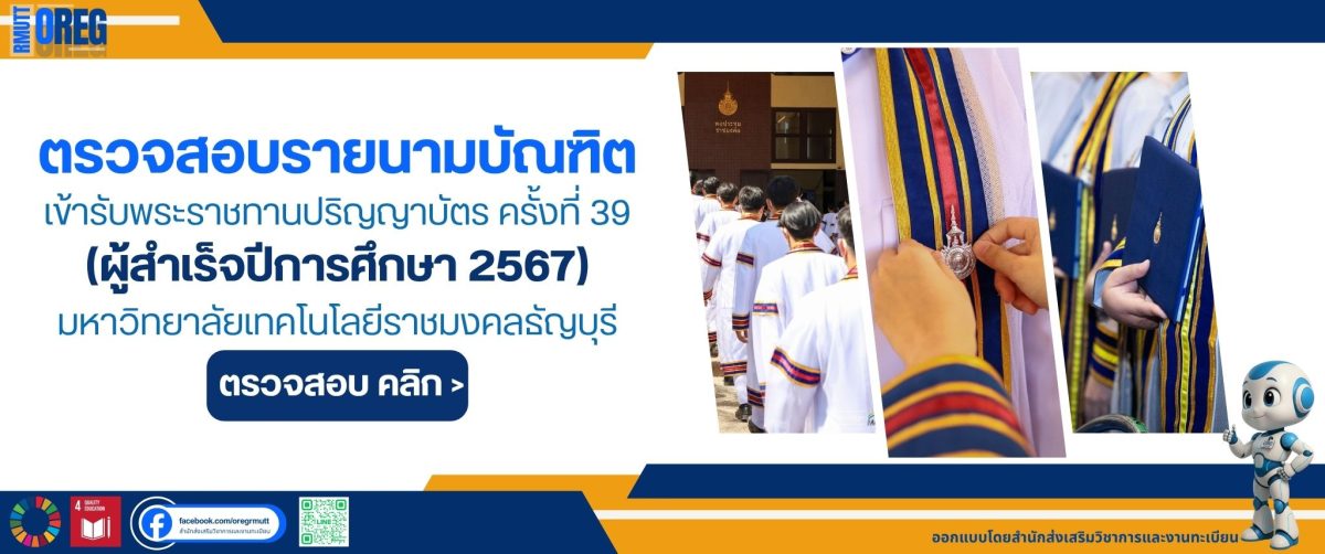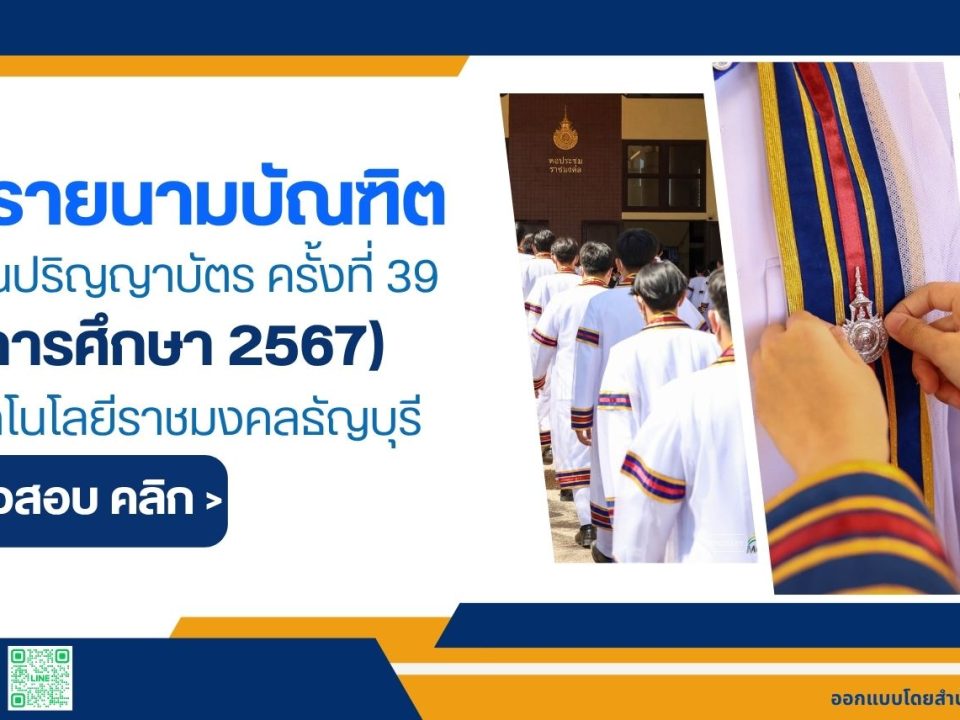 มหาวิทยาลัยเทคโนโลยีราชมงคลธัญบุรี ได้กำหนดลำดับคณะการเข้ารับพระราชทานปริญญาบัตร ครั้งที่ 39 ประจำปีการศึกษา 2567 โดยมีกำหนดการดังนี้ วันที่ 6 – 11 พฤศจิกายน 2568 : วันซ้อมย่อย คณะสถาปัตยกรรมศาสตร์ 6 พฤศจิกายน 2568 คณะศิลปศาสตร์ 8 พฤศจิกายน 2568 คณะบริหารธุรกิจ 8 พฤศจิกายน […]