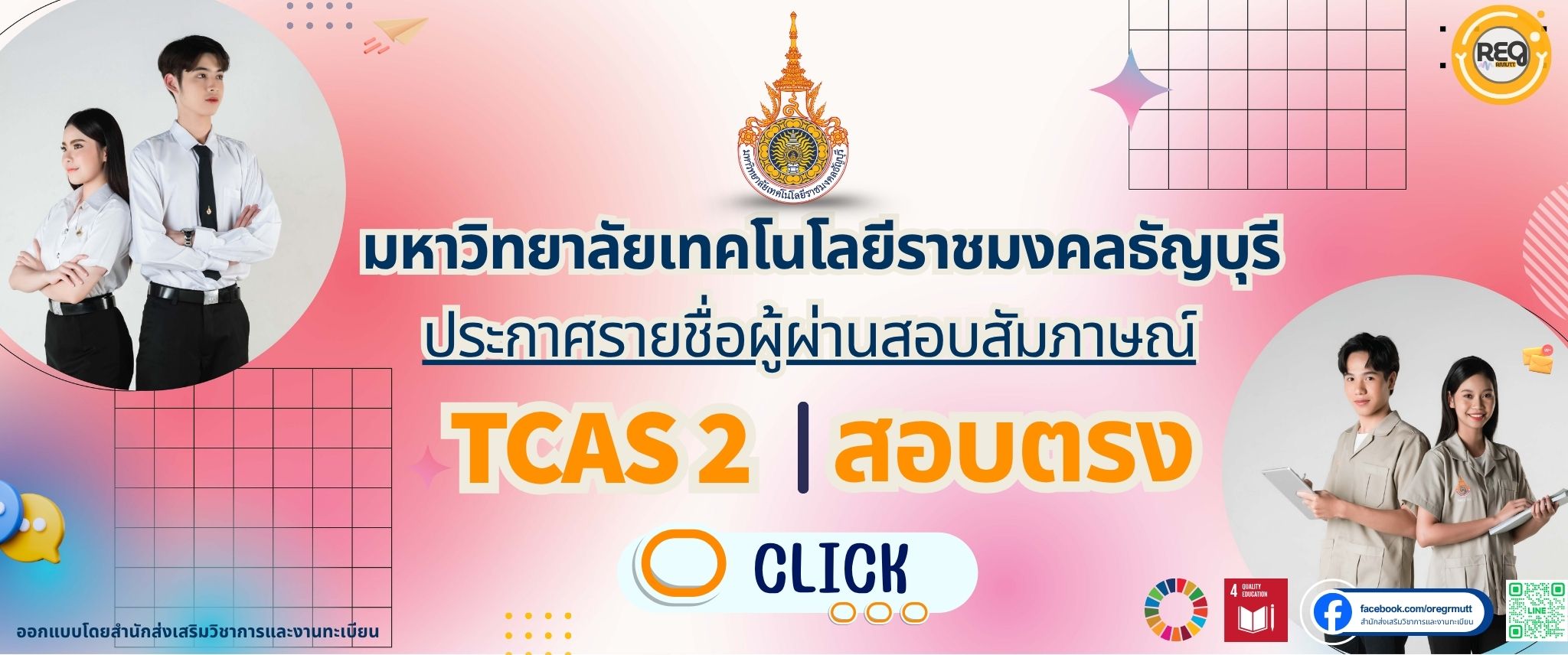มหาวิทยาลัยเทคโนโลยีราชมงคลธัญบุรี ประกาศรายชื่อผู้มีสิทธิ์สอบข้อเขียนและสอบสัมภาษณ์ รอบ สอบตรง